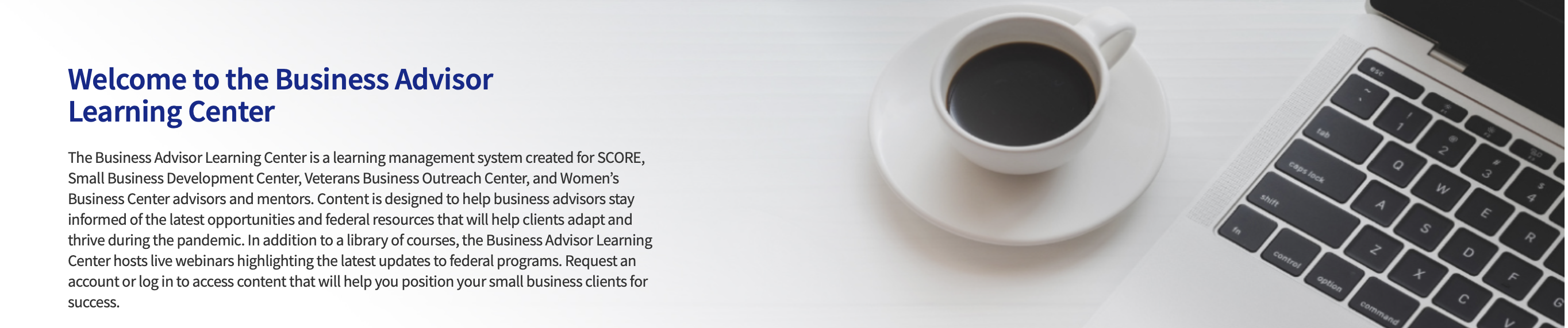 The Business Advisor Learning Center is a learning management system created for Small Business Development Center (SBDC), SCORE, Veterans Business Outreach Center, and Women’s Business Center advisors and mentors.
